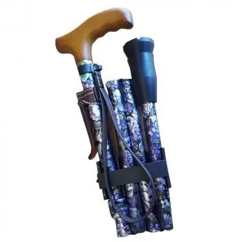 商品名:ラクーンステッキ(楽運素敵) 折りたたみ ソフトタイプ ブルー花柄・OMST16-PP-Z