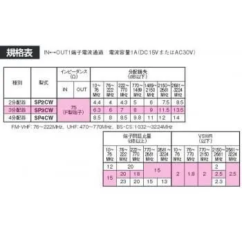 商品名:マスプロ電工 4K8K放送対応 3分配器 SP3CW