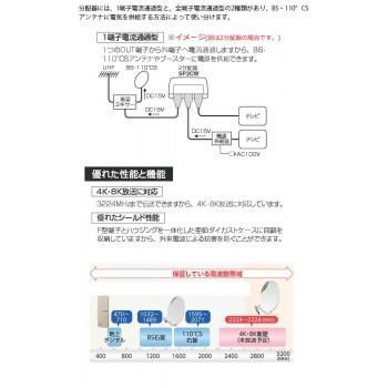 4K・8K衛星放送(3224MHz)に対応、地デジ・BS・CS分配器(1端子電流通過型3分配器)です。