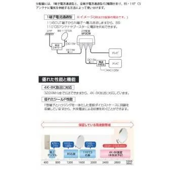4K・8K衛星放送に対応、地デジ・BS・CS分配器。