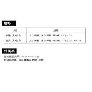 ビデオデッキやDVDプレーヤーなど4つのAV機器からの入力信号をスイッチで切換えられる、電源を使わないタイプのAVセレクターです。RCAピンジャックはすべて24金メッキです。