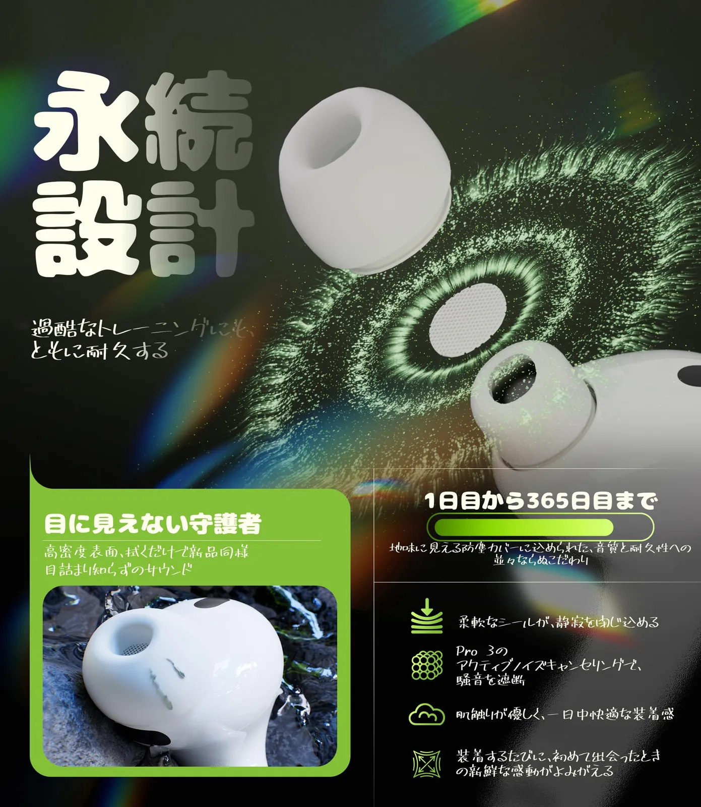 【正確なカット】正確なカットで快適に感じることができ、適切な柔らかさにより、耳の痛みを感じることなくAirPods Pro 3を長時間使用できます。滑り止め設計により、耳の安定性と快適さが長持ちします。