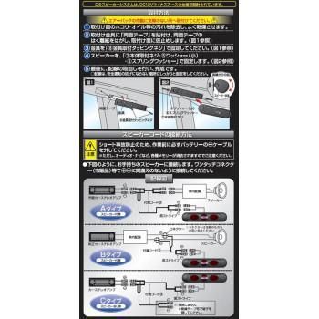 セット内容スピーカー×2、取付け金具×2、配線コード×2、両面テープ×2、ワッシャー(小)×4、スプリングワッシャー×4、本体取付ネジ×4、金具取付タッピングネジ×4、ビス止めクリップ×4、取扱説明書