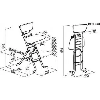 サイズW350×D480×H840×SH350~650mm、折り畳み時:W350×D180×H950mm