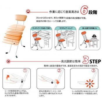 シートと背もたれに特殊ゴムを配し、上体の動きに合わせて揺動するので、作業の合間にストレッチも出来ます。5cm刻みで35~65cmまで6段階の座面高さ調整が可能。家庭内の様々なシーンで活躍します。