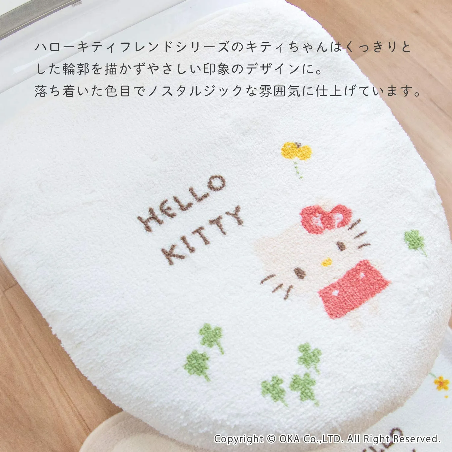 森の動物との触れ合いテーマに、キティちゃんと(森のフレンド)リスを向き合わせ、会話しているような、ちょうちょとたわむれているような場面をイメージし、トイレ空間の中で癒しを感じていただけるシリーズです。