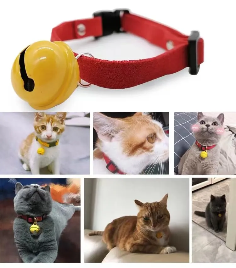 猫 首輪 鈴 ネコ 首輪 猫くびわ 黄色い鈴付き かわいい サイズ調節可能 ペットの首輪 子猫の首輪鈴付き 安全首輪 快適でソフト ベル付き 軽量 おしゃれ 猫犬通用(赤)