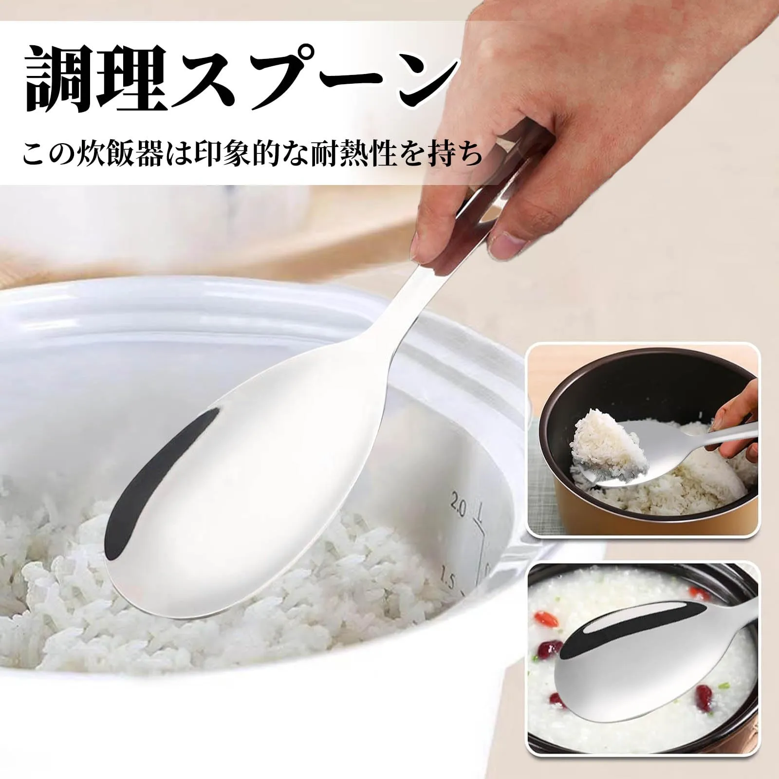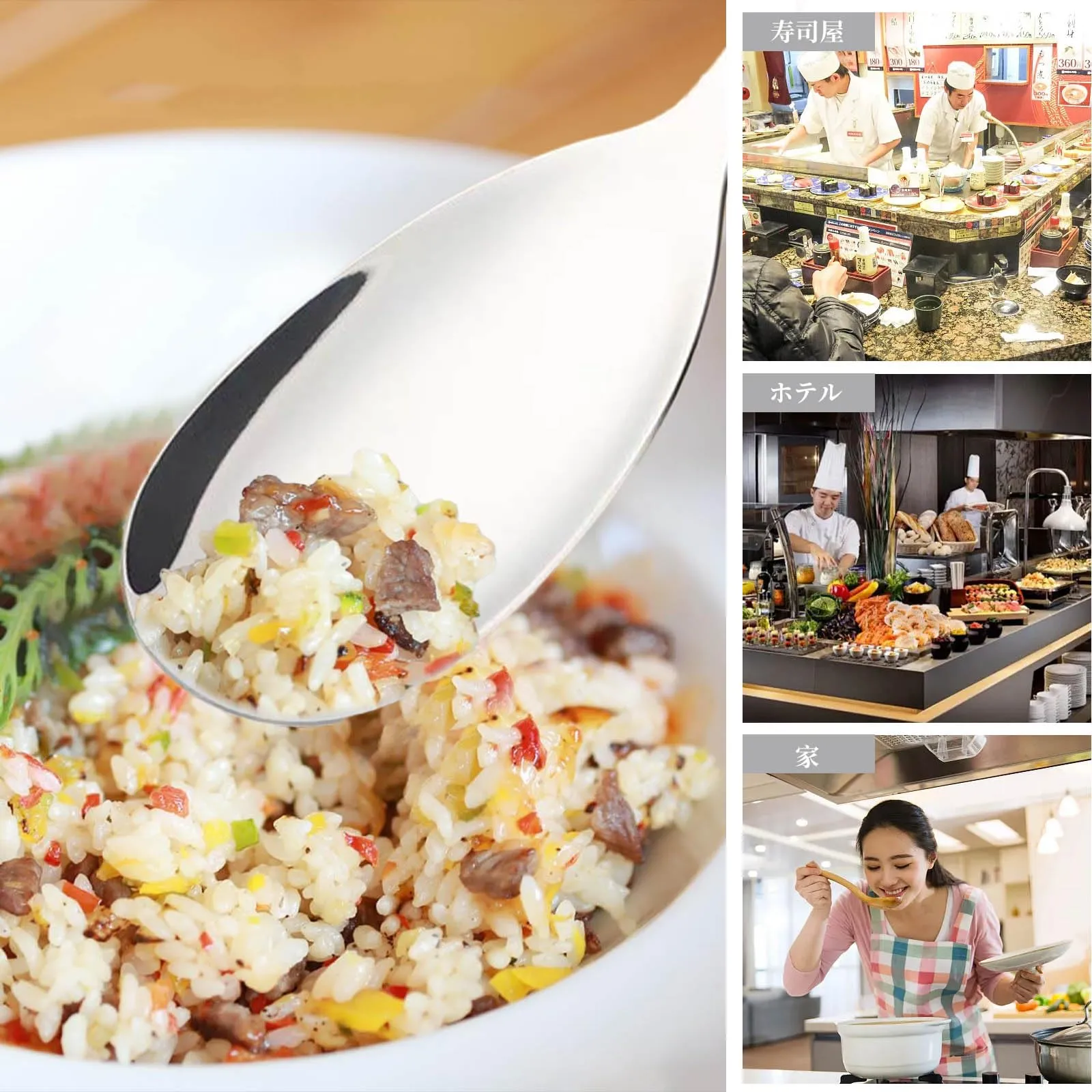 【調理用スプーン】:この調理用スプーンは、調理時の掬い取り、配膳サービス、家庭でのご飯盛り付けなど多目的に使用可能。家庭用キッチンの調理、レストランの配膳サービス、ホテルの宴会料理提供、家庭での食事の取り分けなど様々なシーンに対応し、日常の調理に実用的なツールであると同時に、商業飲食業における効率的な補助器具でもあります。