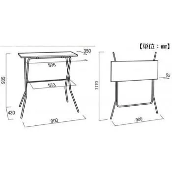 サイズW900×D430×H935mm、折り畳み時:W900×D95×H1170mm