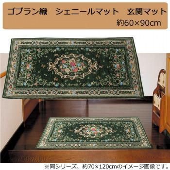 商品名:ゴブラン織 シェニールマット 玄関マット グリーン 約60×90cm YAN04860HG
