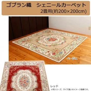 商品名:ゴブラン織 シェニールカーペット 2畳用(約200×200cm) ベージュ・YAN13820BE