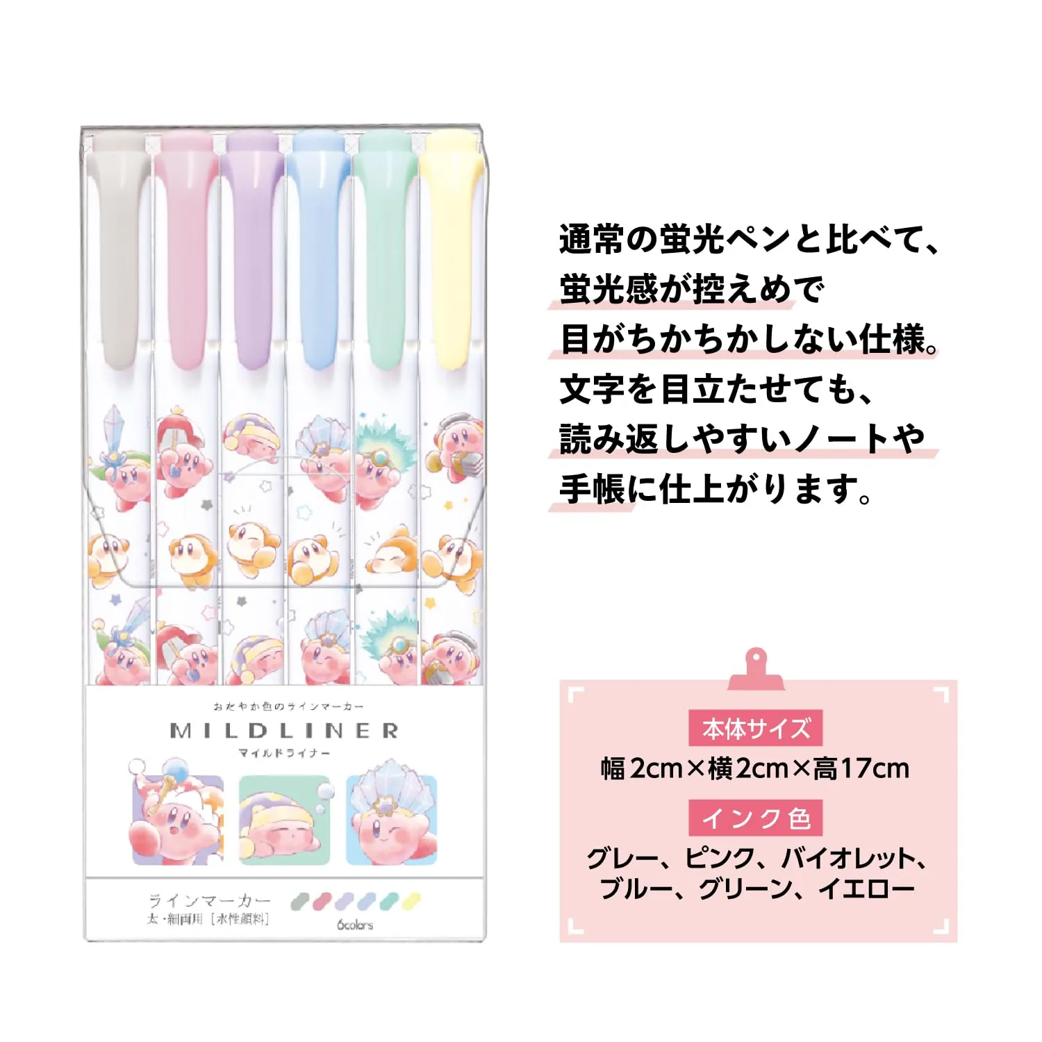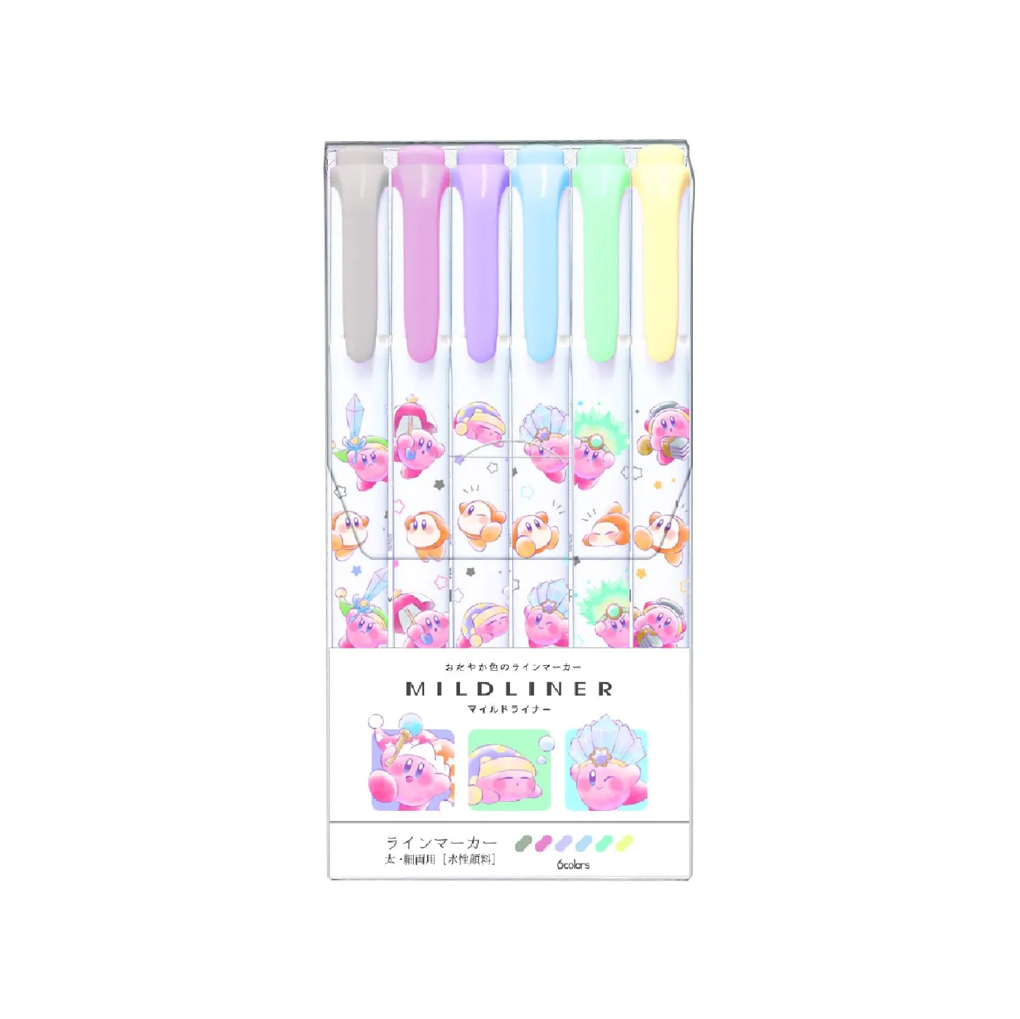 【マイルドライナー6色セット】 太字と細字のツインタイプ。