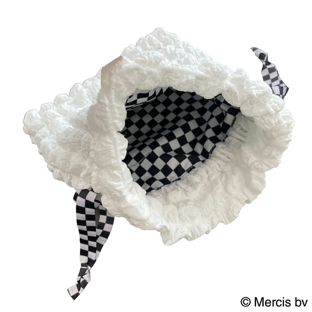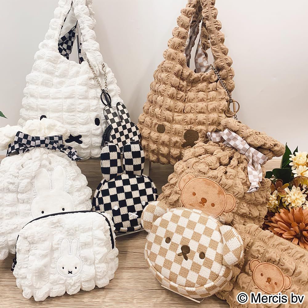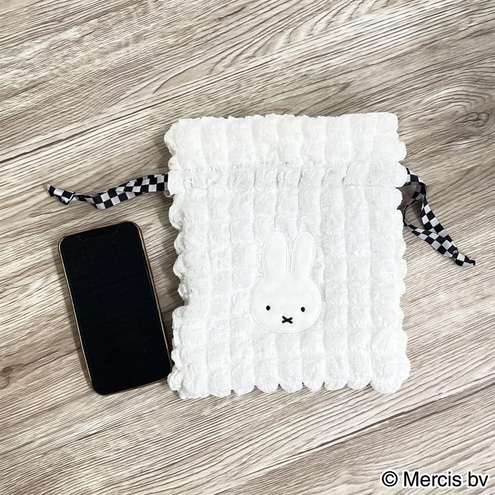 【ミッフィー/MIFFY】グッズ♪ プクッと立体感のあるポコポコ生地とチェッカーブラッグ柄を組み合わせた トレンドスタイルシリーズです。 リボンがアクセント ポコポコ生地の巾着ポーチ