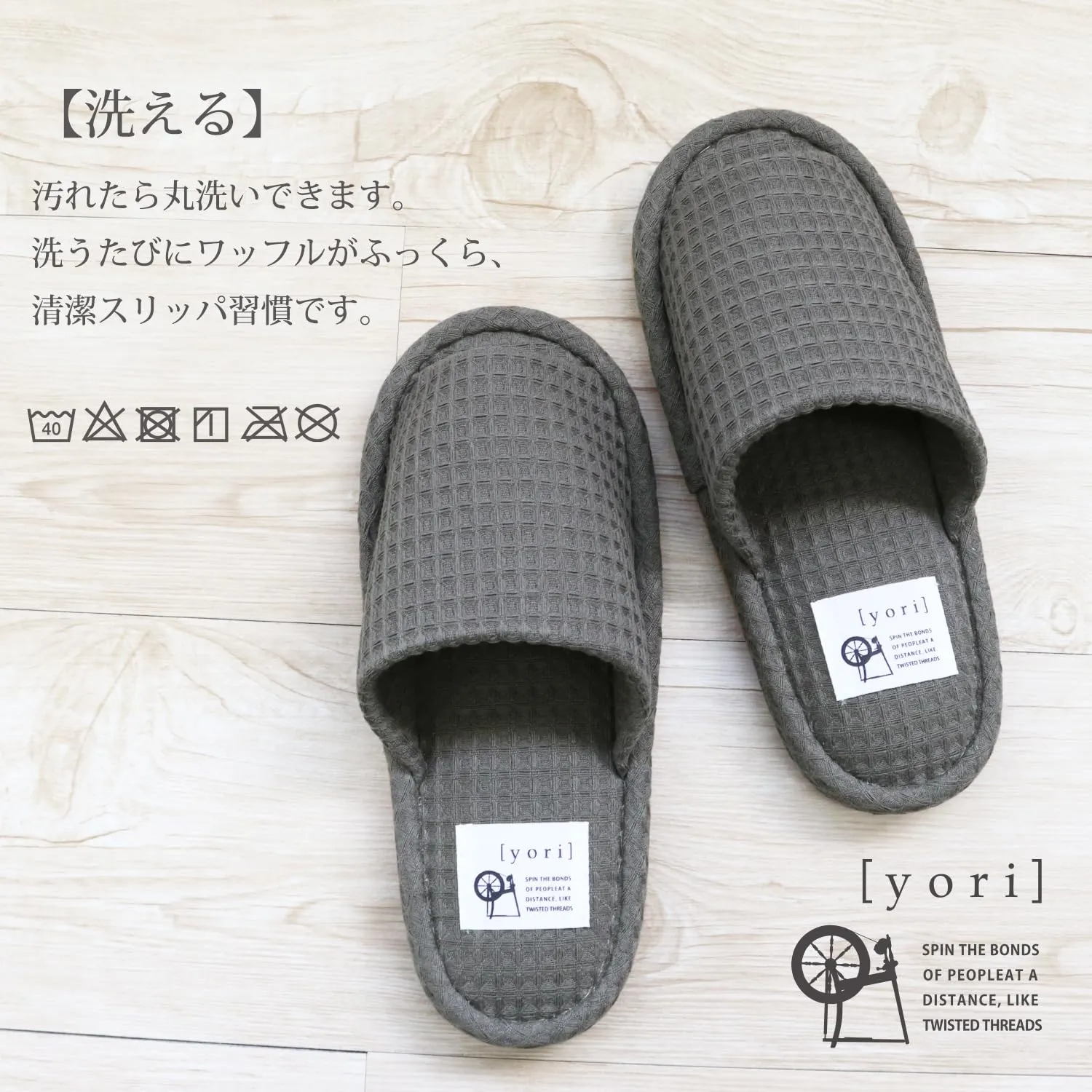 新品 オクムラ(okumura) スリッパ 洗える yoriコットンワッフル Lサイズ チャコール AAAA1006CH 綿100% ふっくら 肌ざわりがいい 履きやすい