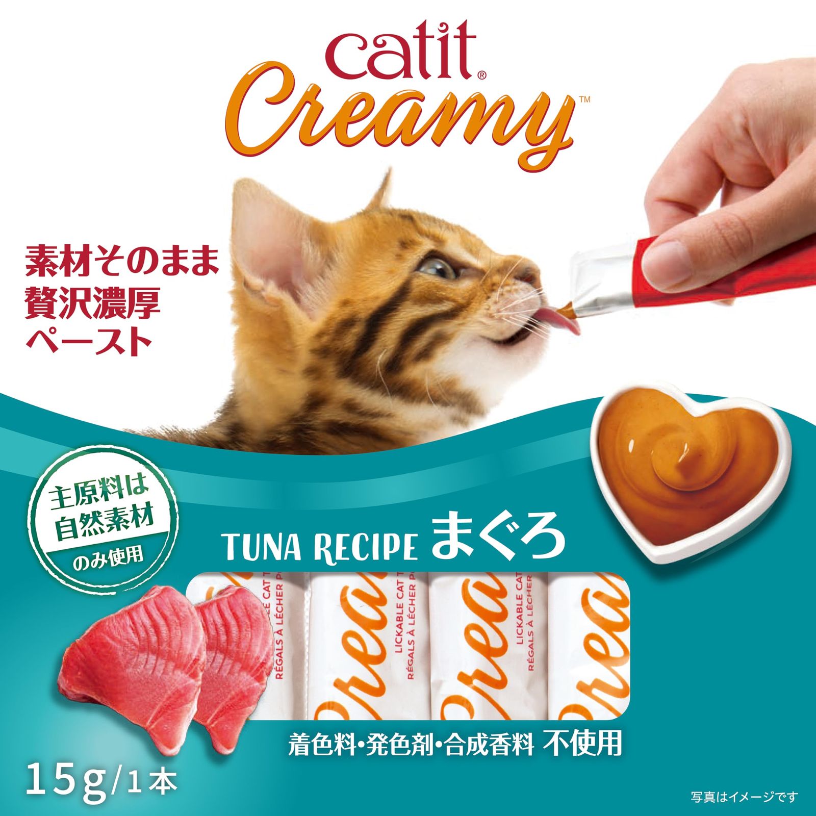 素材そのまま贅沢ペースト!ねこちゃん用のCreamyおやつ。 タウリン配合。 塩分・カロリー控えめな、ねこちゃんの健康に配慮したおいしいナチュラルおやつです。 ねこちゃんの大好きなまぐろ味。 Catitからナチュラルな原料にこだわった風味豊かなねこちゃん用おやつCreamy(クリーミー)が登場!