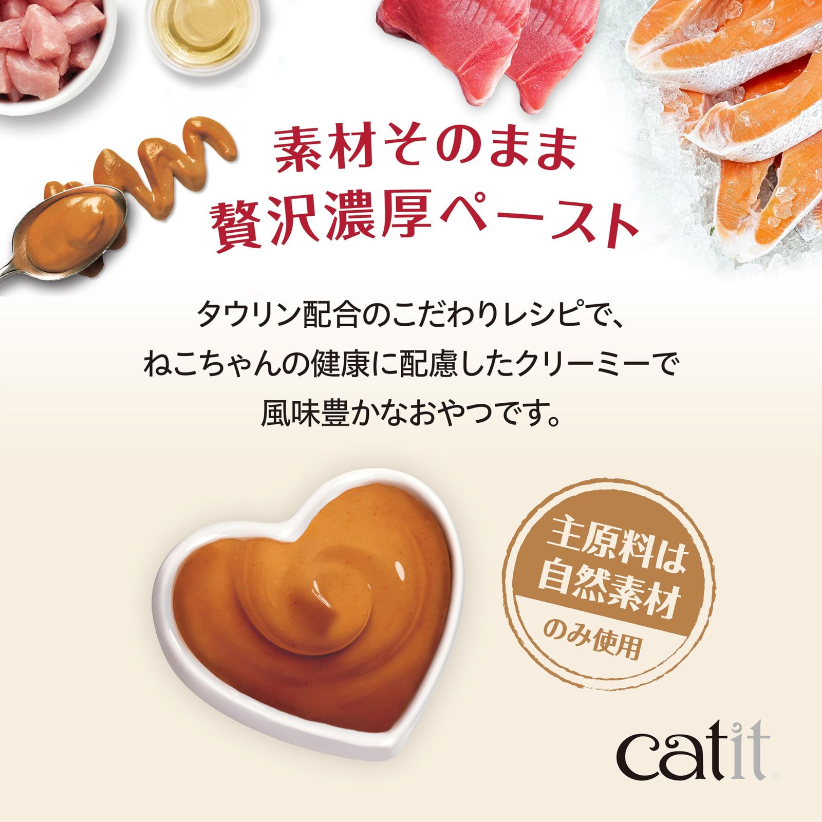 素材そのまま贅沢ペースト!ねこちゃん用のCreamyおやつ。 タウリン配合。 塩分・カロリー控えめな、ねこちゃんの健康に配慮したおいしいナチュラルおやつです。 ねこちゃんの大好きなまぐろ味。