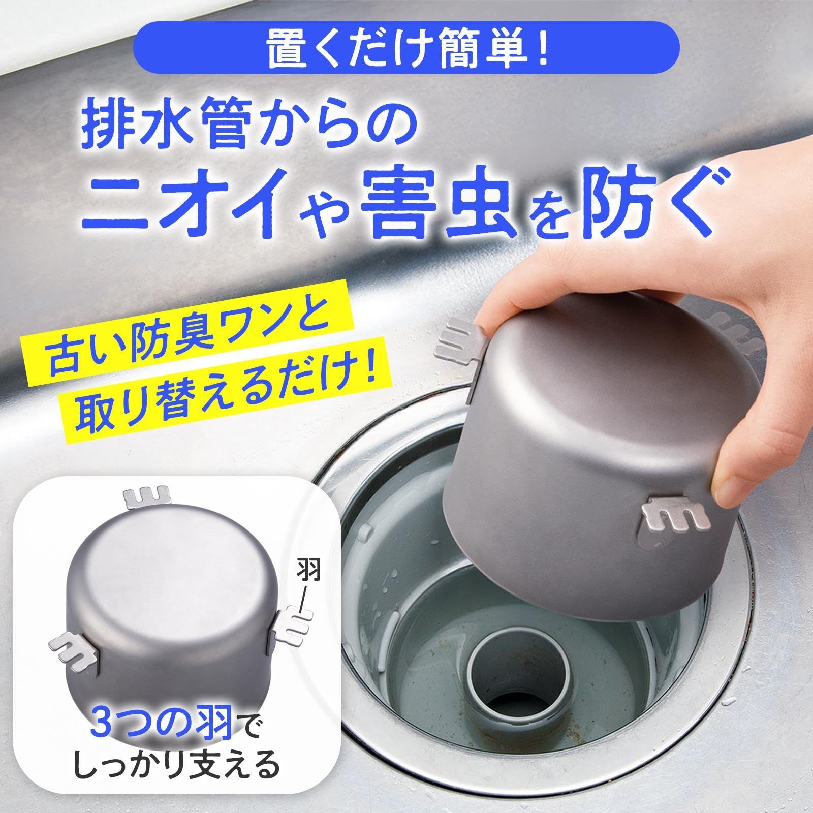 置くだけの簡単設置で、古い防臭ワンと取り替えるだけ◎ステンレス製だから丈夫でヌメリにくく、お手入れがラク!