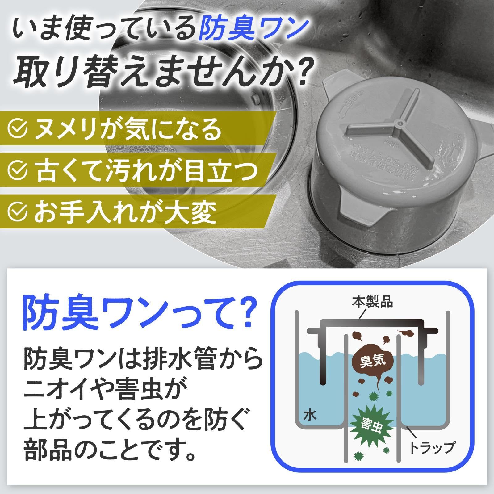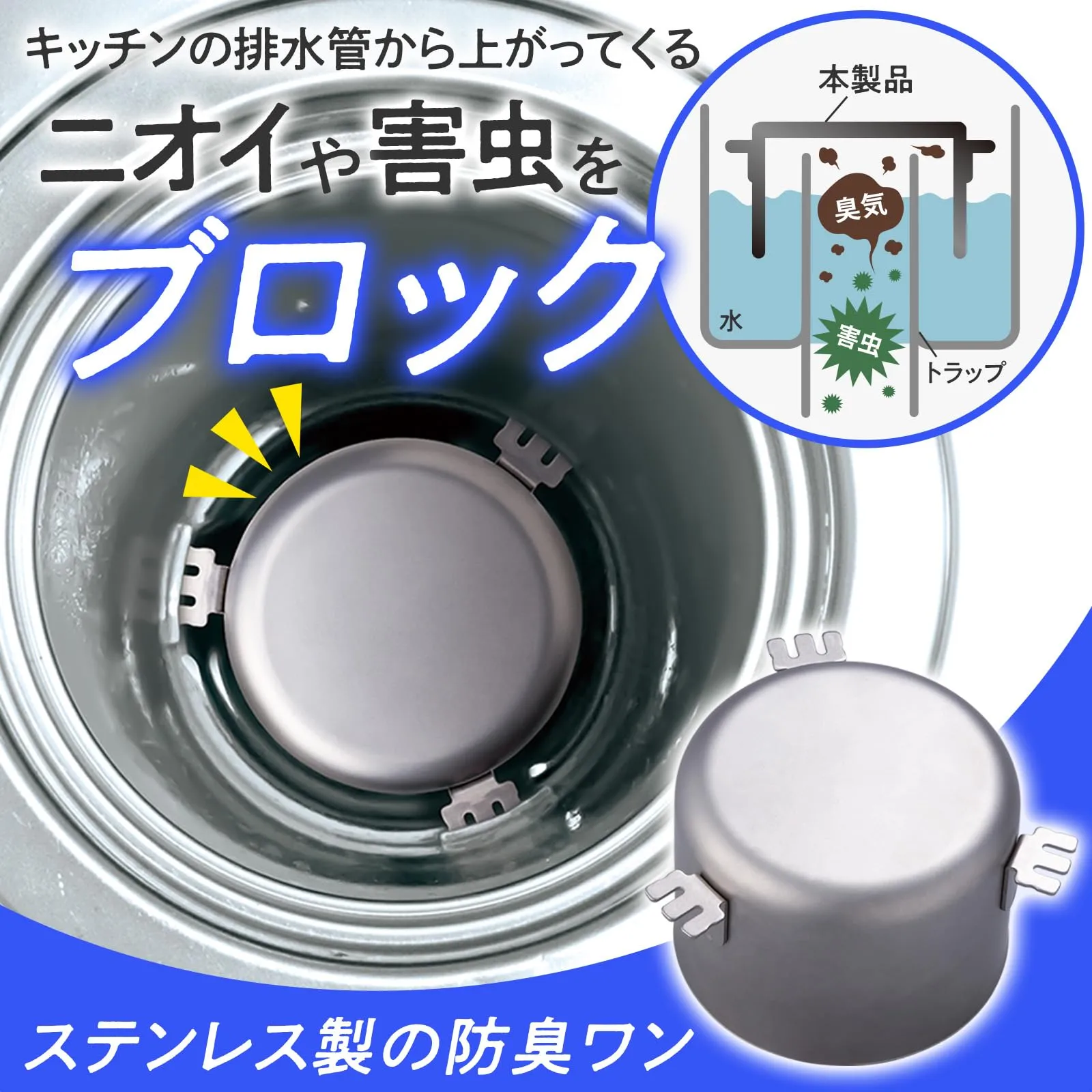 キッチンの排水口に被せることで、排水管から上がってくる臭気や害虫の侵入を防ぐ防臭ワン。