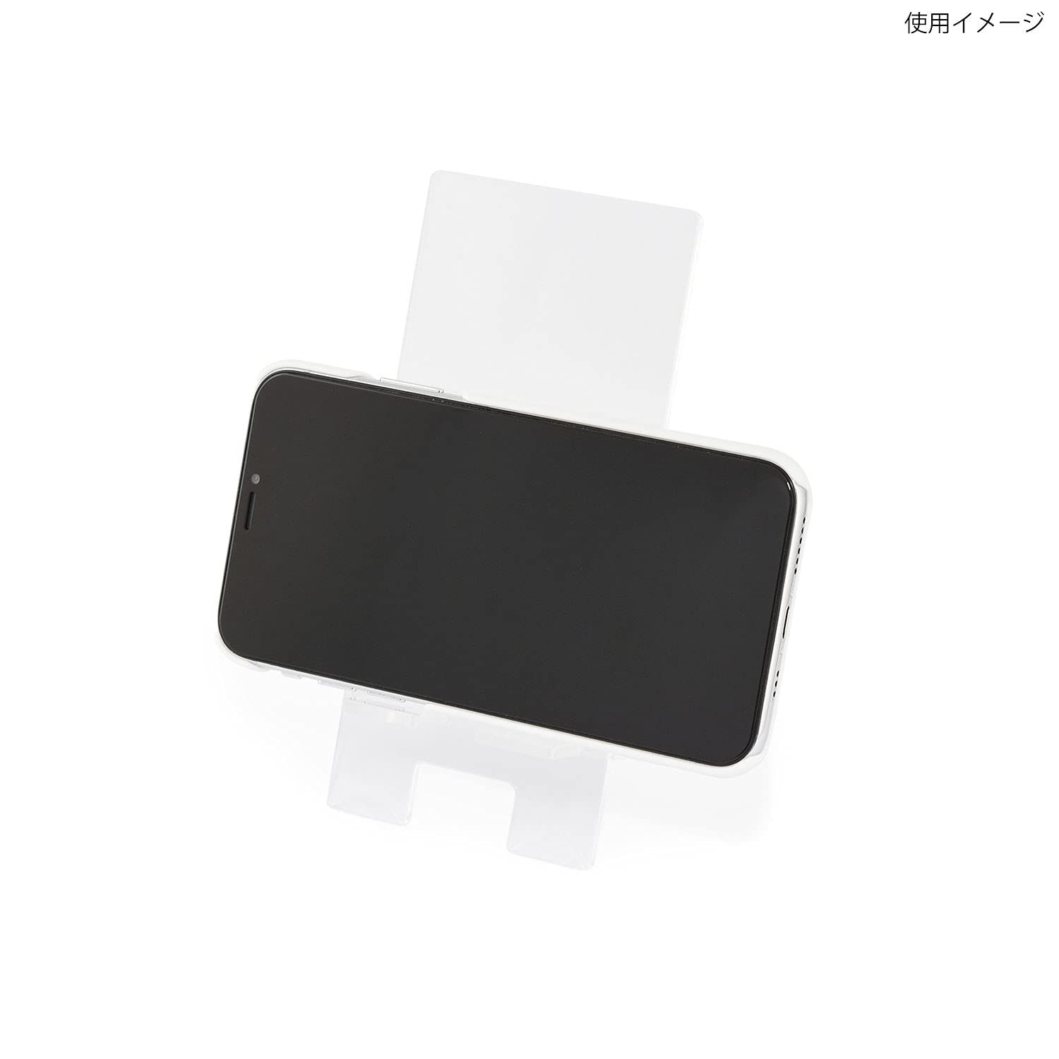 スマートフォンなどを立てかけられるアクリル製のデスクトップスタンドです。