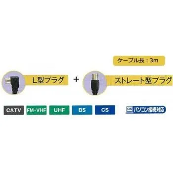 片端L型・片端ストレート型プラグ付TV接続ケーブルです。4K8K放送に対応!!
