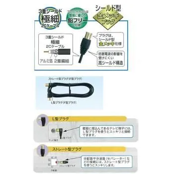 片端L型・片端ストレート型プラグ付TV接続ケーブルです。4K8K放送に対応!!