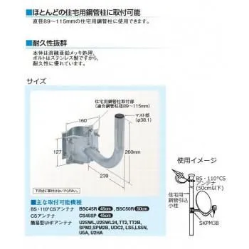 商品名:マスプロ電工 BS・CSアンテナ用取付金具 SKPM38