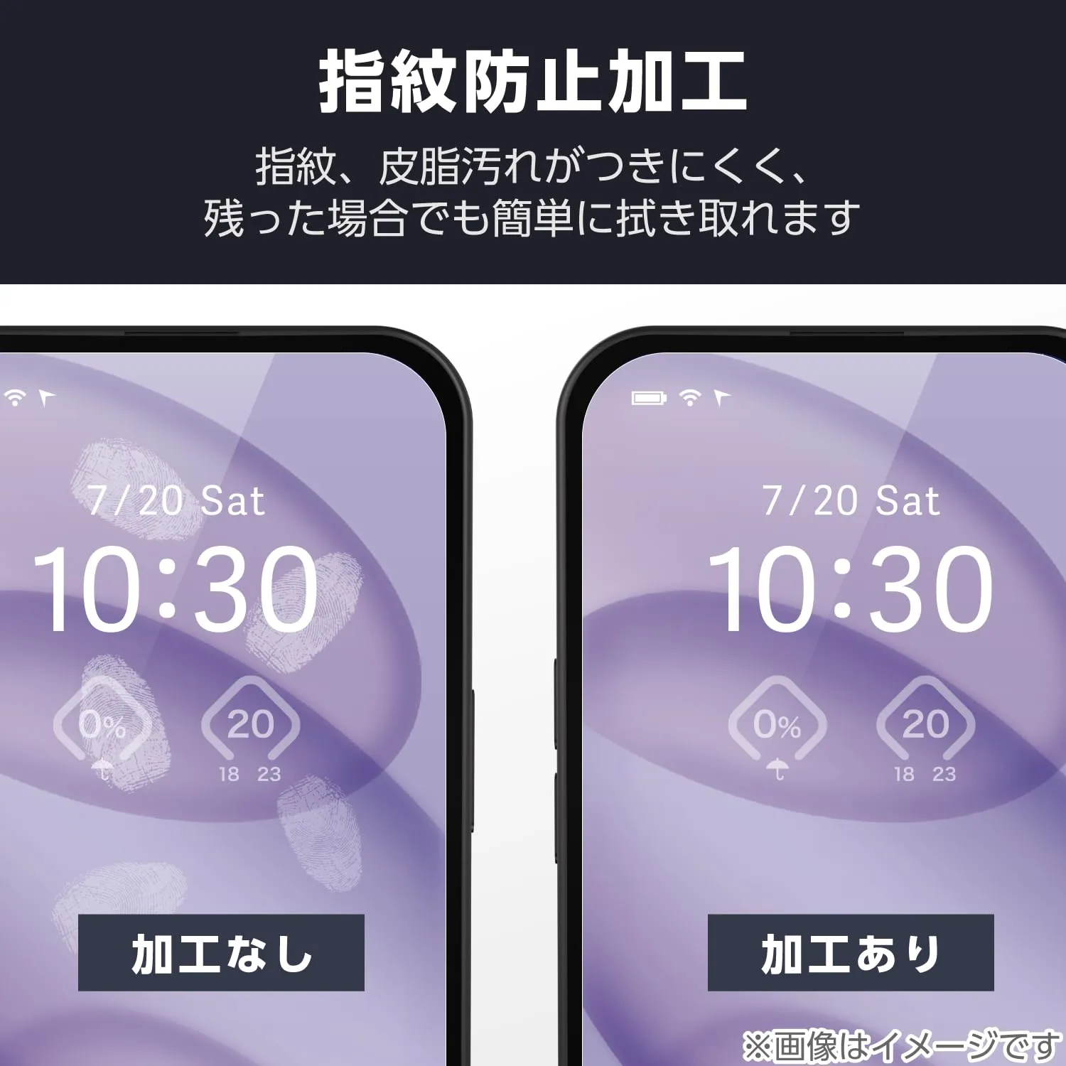 ■指紋・皮脂汚れが付きにくく、残った場合でも簡単に拭き取れる指紋防止加工を施しています。