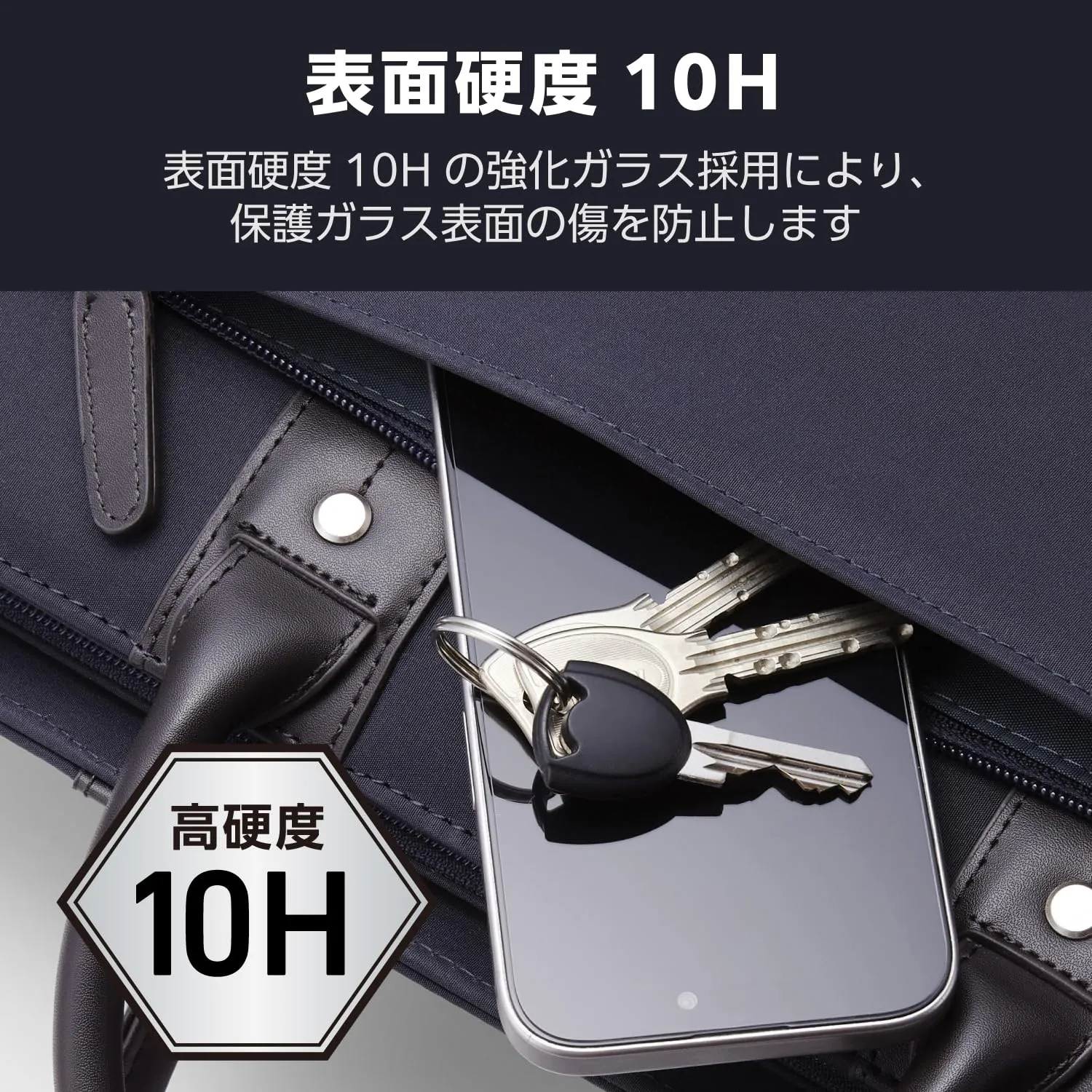 ■表面硬度10Hの強化ガラス採用により、保護ガラス表面の傷を防止します。