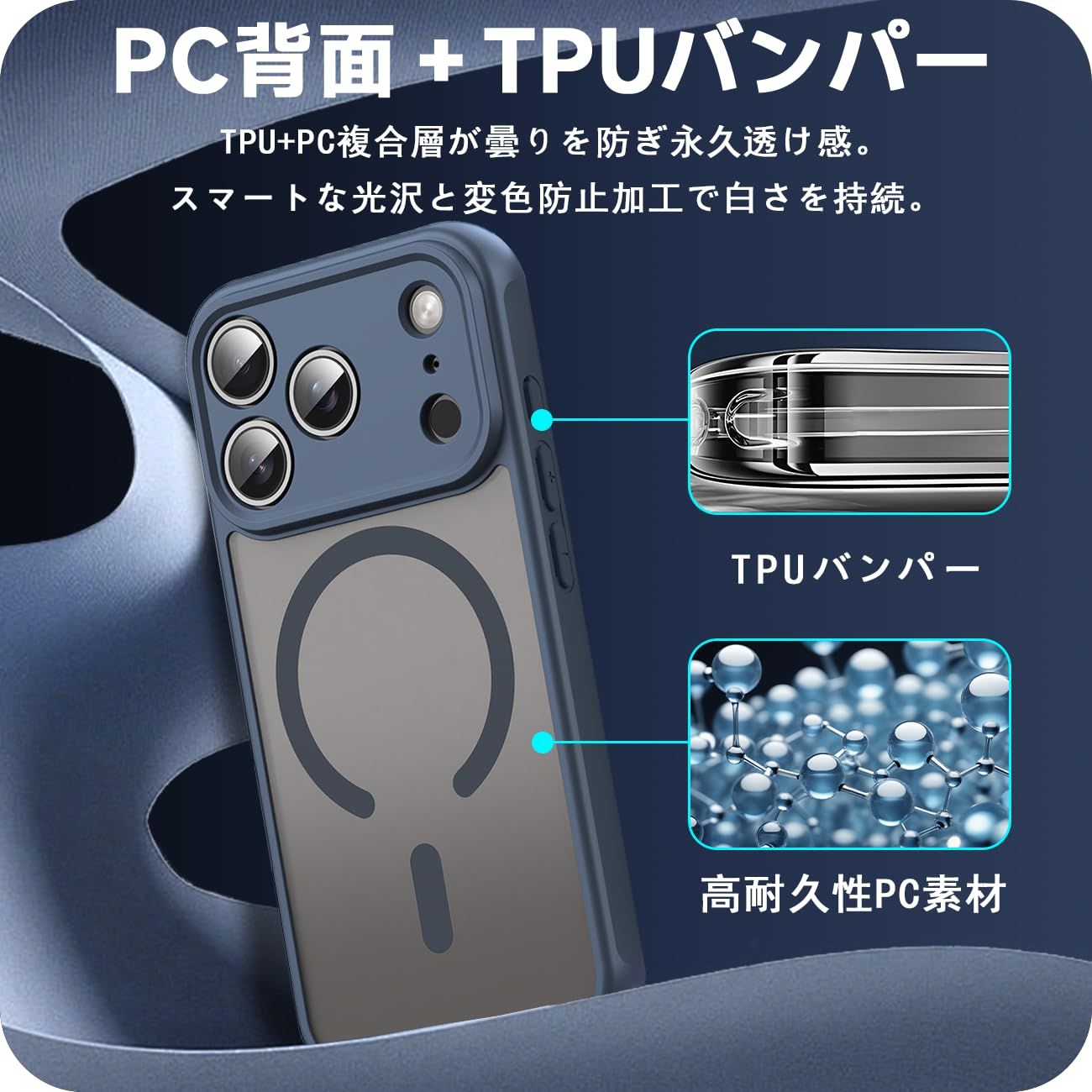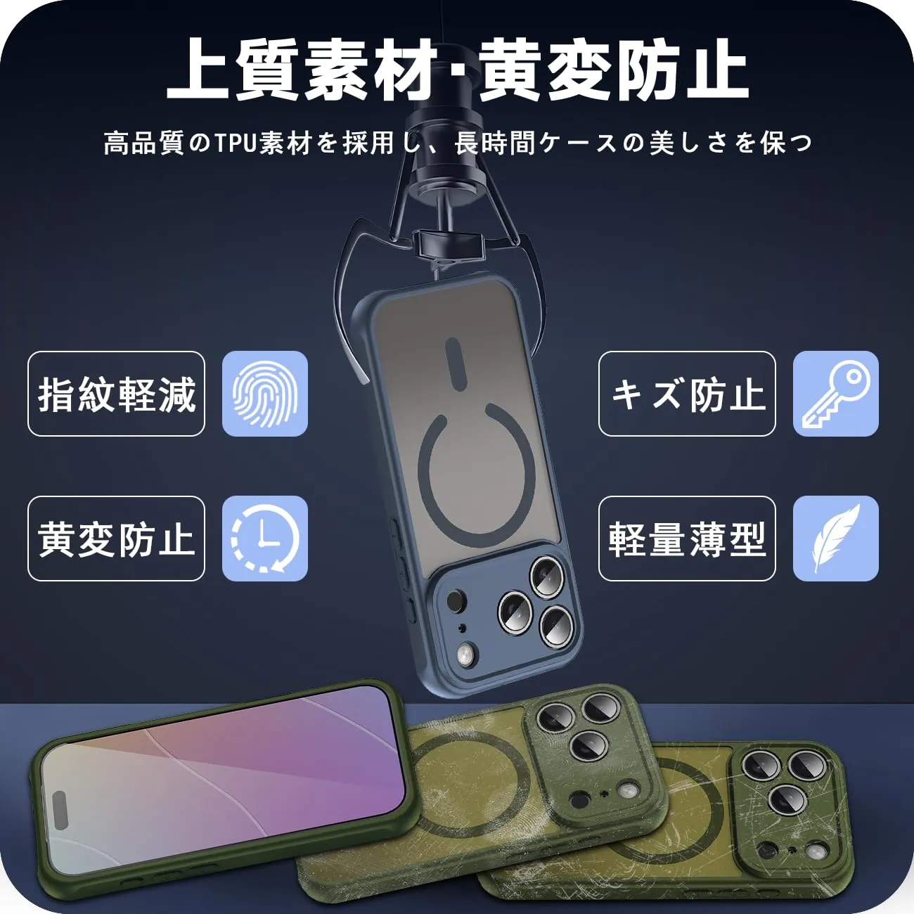 【黄変しない特殊素材】背面のポリカーボネートには紫外線に強いUVコーティング、側面には黄変しないTPUを使い黄変しません。