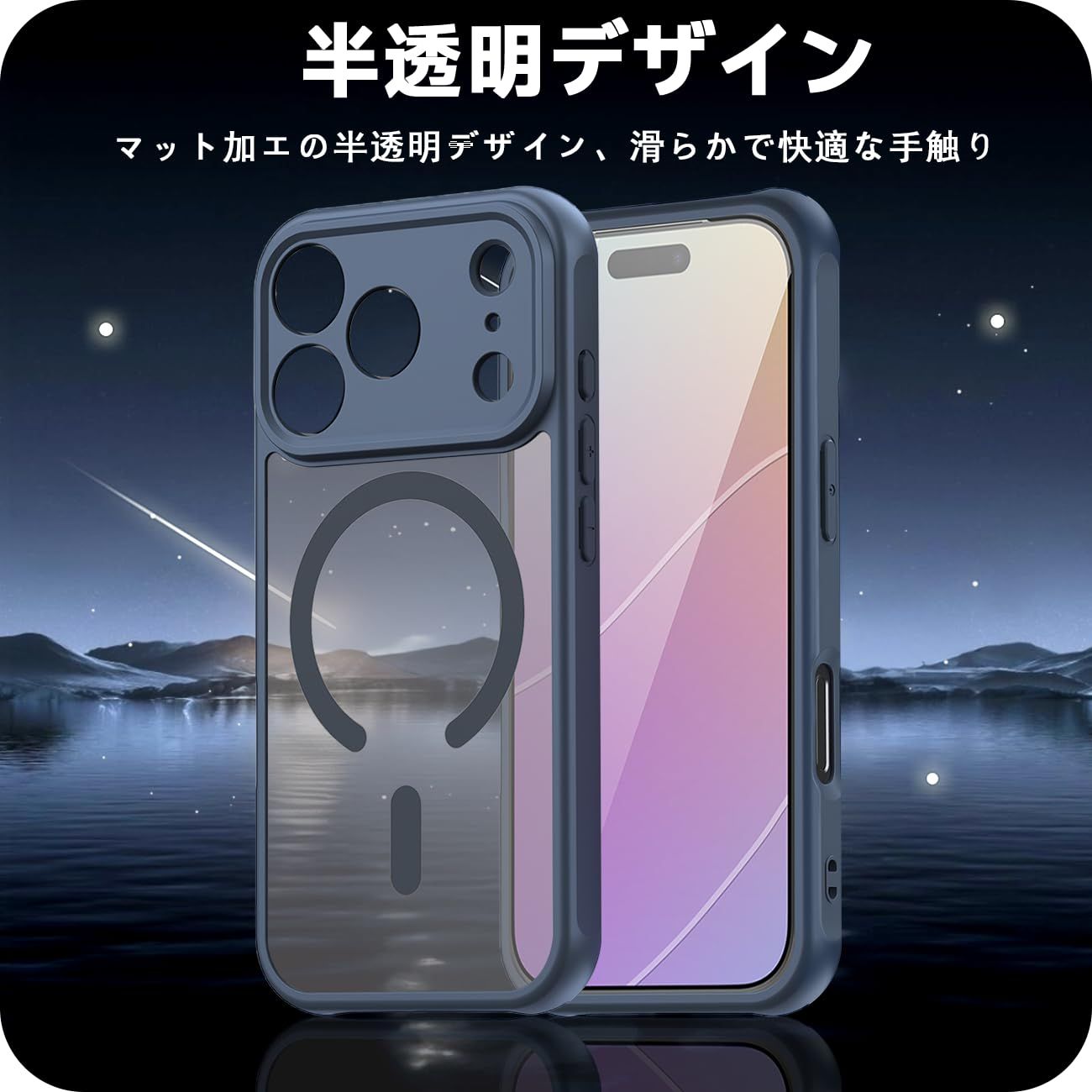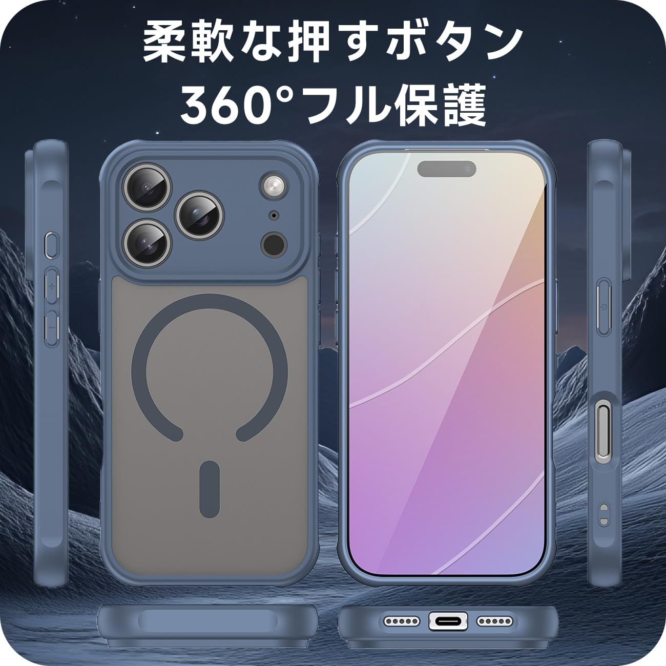 このiPhone 17 Proケースは、ワイヤレス充電にフル対応したスリムな設計です。