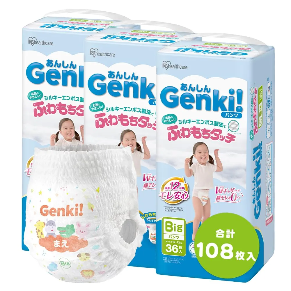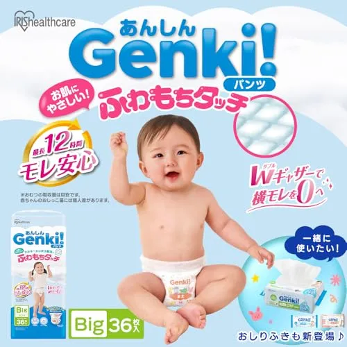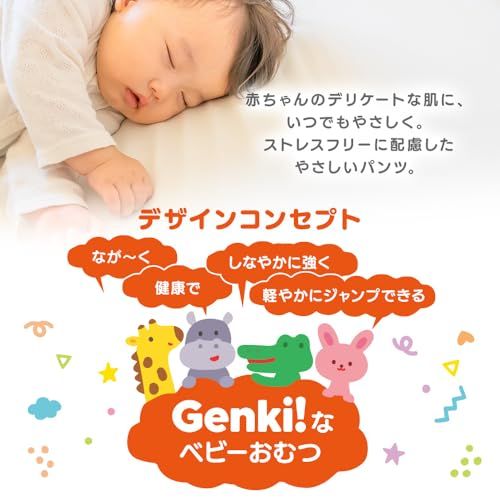 あんしん“Genki!パンツ”。赤ちゃんのデリケートな肌に、いつでもやさしく。ストレスフリーに配慮したやさしいパンツ。ベビーおむつ。