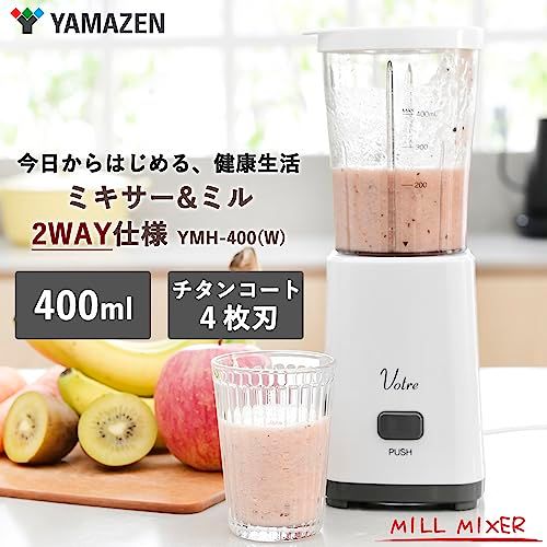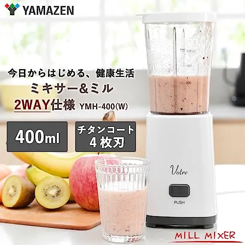 【チタンカッター】ミキサーもミルもチタンコート刃仕様で、フルーツや野菜はもちろん、コーヒー豆や煮干もしっかりと撹拌します。