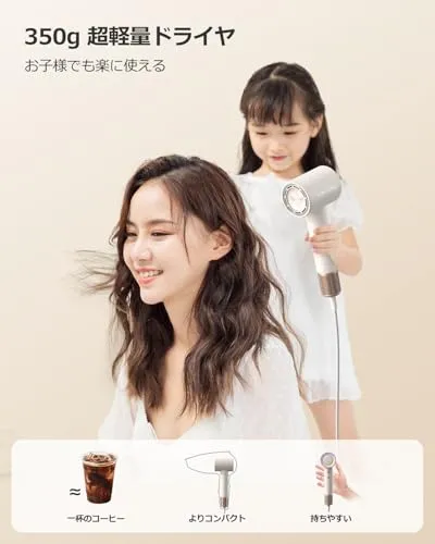 【家族全員で使える機能美】 350g超軽量ボディ(本体) 片手操作可能高齢者・子供のセルフケアを支援 図書館レベルの静音設計(58dB) 深夜/早朝使用可能赤ちゃん寝室隣接時でも安心 360マグネットノズル 造型のプロ仕様アウトバン根本立てに最適