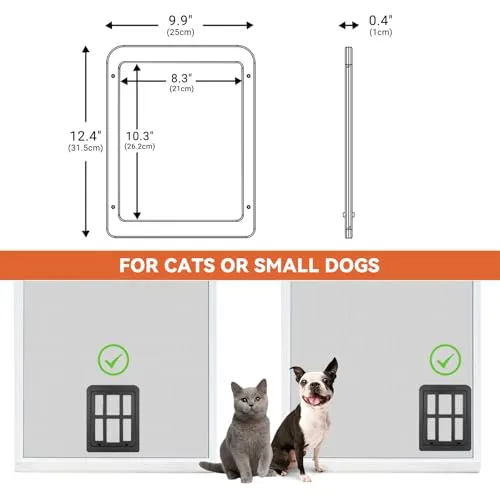 耐用な材質:厚くて丈夫なABS素材を使い、紫外線の下に長く使っても変形しない。ペットドアを固定する用のスレレンス製のネジが附属している。