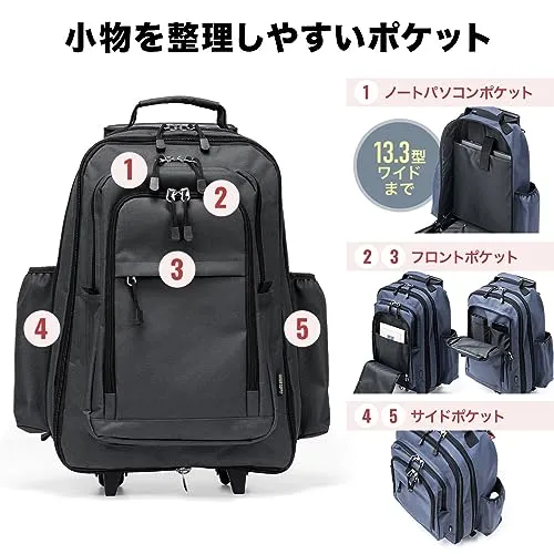 リュック として使用する際は、両手が自由に使えるようになります。 リュック 時は、キャスターカバー付きで、ショルダーベルトはクッション入りでベルト長も調整が可能です。