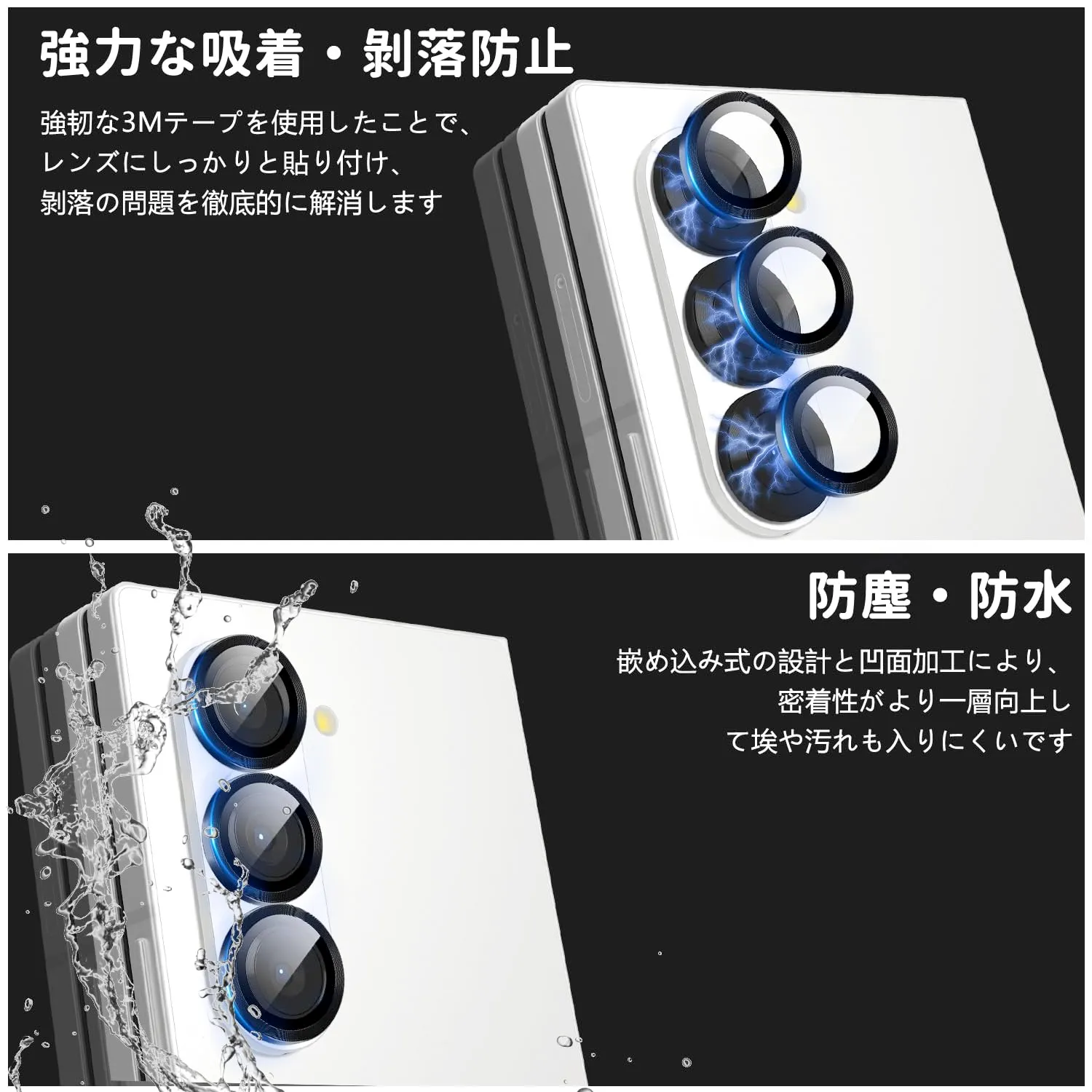 【埃汚れ防止・?落防止】Samsung Galaxy Z Fold 6 SC-55E 対応 カメラフィルムは独立型の嵌め込み式の設計と凹面加工により、密着性がより一層向上して埃や汚れも入りにくいです。市販の一体型カバーのよう穴にホコリが溜まる問題も全くなく、いつでも綺麗に保てる!更に、強?な3Mテープを使用したことで、レンズにしっかりと貼り付け、?落の問題を徹底的に解消します。