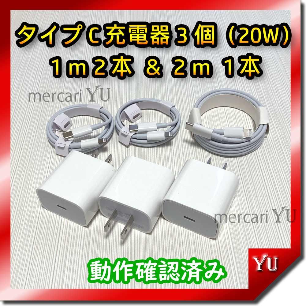 アダプタ側がUSB-Cのケーブル用 20w 電源アダプタ3個と、
