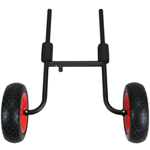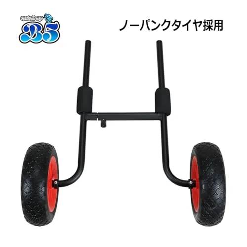 スカッパーホールに差し込んで使用するタイプのカヤックドーリーです。 これがあればカヤックを楽に移動させる事ができます。