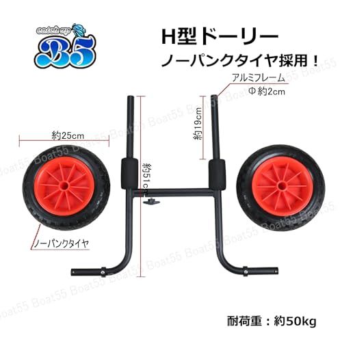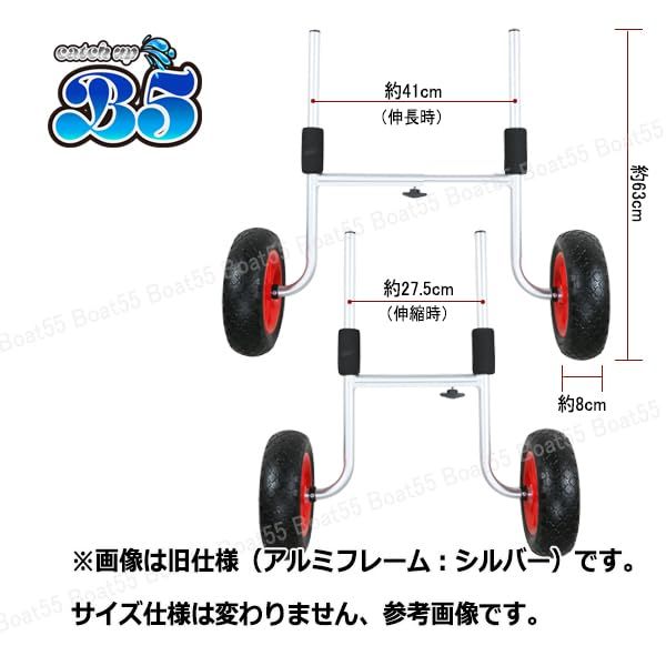 フレームサイズ 高さ:約51cm、タイヤ装着時:約63cm、スカッパーホール差し込み対応幅の範囲:約27.5cm約41cmまで、フレーム太さ:約2cm、 タイヤサイズ 直径:約25cm(3.00-4) 幅:約8cm、 耐荷重:約50kg 、重量:約2.4kg(タイヤ1個 約0.9kg2個 フレーム 約0.6kg) ノーパンクタイヤ 新採用!!
