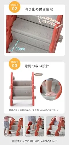 安心安全緩やかなスロープの設計でお尻に対する衝撃を最小にして、それに、お子様の小さい手のために作った安全ハンドル、すべり止め付き階段、階段の間に隙間のない設計で安全な遊園地を提供することができます