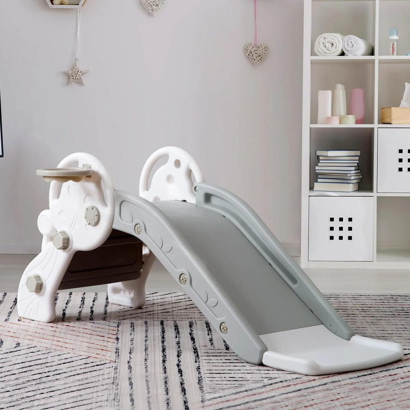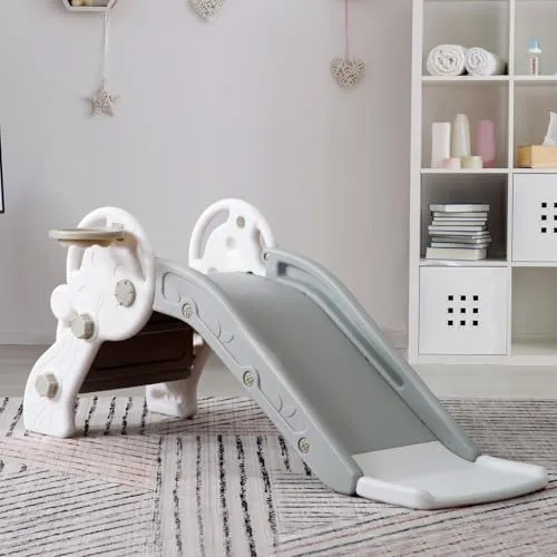 2 in 1子供用滑り台滑り台とバスケットゴールの2セット滑り台、滑り台だけでなく、ボール遊びも楽しめます。