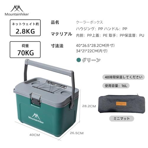 【16L/17QT容量】内寸342122cmで。外寸は約4026.528.2cm。500ml550mlペットボトルが最大15本収納可能。飲料、弁当、食材などの持ち運びにちょうど良いサイズ感です。