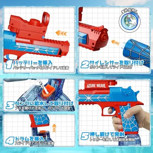 【電動連射式で爽快バトル】:トリガーを引くだけで連続発射できる電動水鉄砲だから、手動式より圧倒的に有利!子供でも簡単操作で楽しめます。フル充電で最大約45分使用可能、長時間の水遊びにも最適。