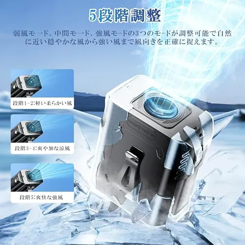 【強力冷却5段階風量】ジェット級の風量で熱中症をブロック! 最大風速3.5m/sの強風モードからソフトな微風まで5段階調節可能。屋外作業やスポーツ時も快適な風を提供し、急な暑さにも対応します。