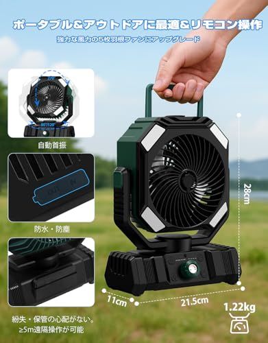 【リモコン付き&タイマー機能&省エネ】このアウトドア扇風機にはリモコンも付属しており、簡単に遠隔操作ができます。 本体背面にはリモコン収納スペースがあり、紛失や収納の心配もありません。この扇風機は