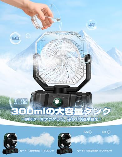 【瞬間冷却&進化型ミストファン】KINGLEAD卓上扇風機は新機能のミスト噴霧を搭載します。送風、ミスト加湿、冷気の3つの機能を兼ね備える進化版卓上冷風扇です。300mlの大容量タンクを内蔵し、爽やかな風と肌にふんわり広がる冷却ミストが二重の涼しさをお届けします。超微細ミストが猛暑でも素早く蒸発し、肌表面のクールダウンと発汗後の水分補給を同時に実現する。このミストファンの送風は通常の扇風機のより涼しい、エアコンより寒くない。十分な風量を確保しながらエアコンの涼しく快適な体験と加湿器の保湿効果を実現し、クーラーが苦手な方や、乾燥が気になる方にお勧めです。ミスト機能には2つのモード(連続噴霧モード/間欠噴霧モード)を搭載します。※氷水を加えるとより涼しくなりますよ!