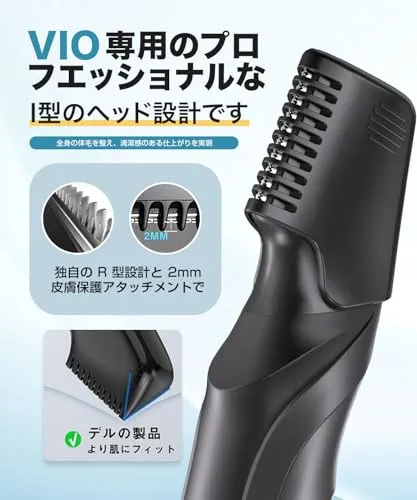 【多部位対応メンズボディシェーバー】プロ仕様のステンレス刃と高出力モーターを搭載し、男性のムダ毛処理に最適化。ダイヤル式で 10 段階の長さ調整(3-12mm)に加え、2mm の肌保護アタッチメント付き。1mm 単位で細かく調整でき、ヘア、脇、背中、胸、腕、脚、VIO ラインなど全身の体毛をきれいに整えられます。高精度な刃は肌への負担が少なく、デリケートな部位でも安心して使用できます。