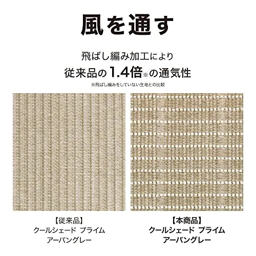 クーラールーのシェードが作るのは、紫外線を遮りながら空気を通す快適な屋外空間。独自の生地を編む方法により、空気がこもることなくシェードの下は木陰のような心地よい空間に保たれます。屋内への日光の差し込みも同時にカットできることで、室内の冷房効率もアップ。人と環境にやさしい紫外線対策で、住まいの軒がもっと心地よい空間に。