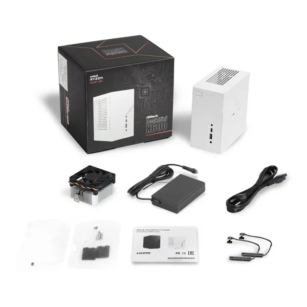 ■付属品:クイックインストールガイド、ACアダプター、電源ケーブル、CPUクーラー、電源一体型SATAケーブル×2、取付ねじ