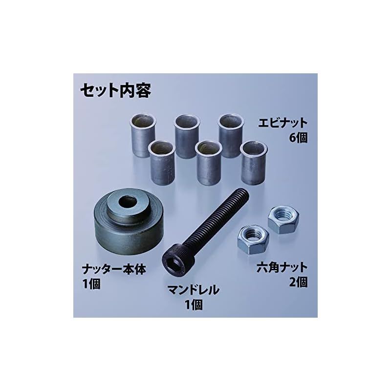 【商品詳細】 ブランド:ロブテックス(Lobtex) 商品種別:ハンドリベッター 商品名:ロブテックス ちょっとナッター2 HNC26M シルバー 製造元:ロブテックス(Lobtex) 商品番号:HNC26M 商品内容:M6用 色:シルバー